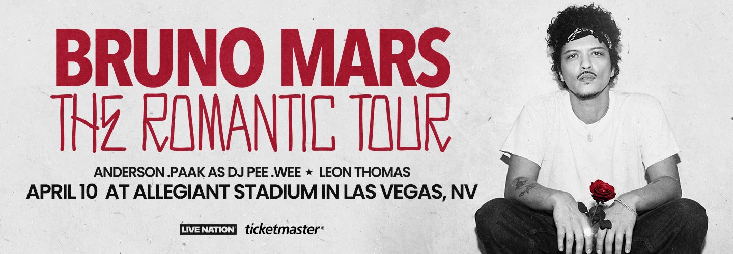 Bruno Mars is bringing The Romantic Tour to Allegiant Stadium on Friday, April 10!