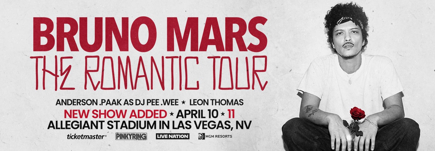 Bruno Mars is bringing The Romantic Tour to Allegiant Stadium on Friday, April 10 and Saturday, April 11!